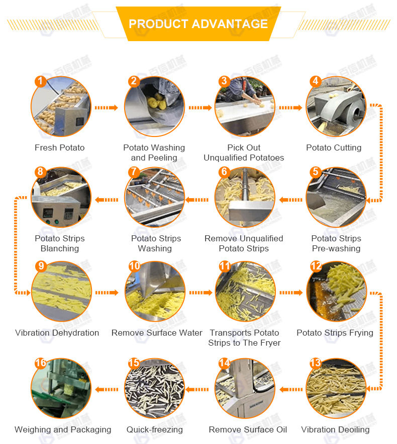 คุณสมบัติ:สายการผลิตเฟรนช์ฟรายแบบอัตโนมัติกำหนดเอง