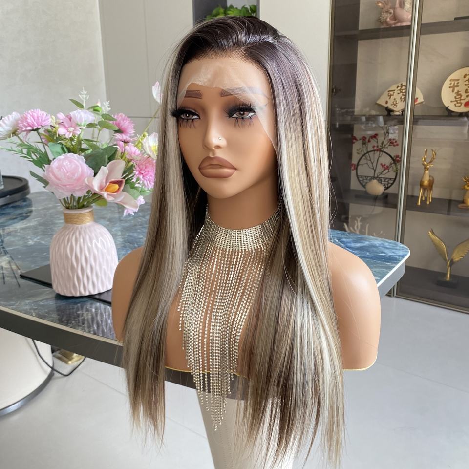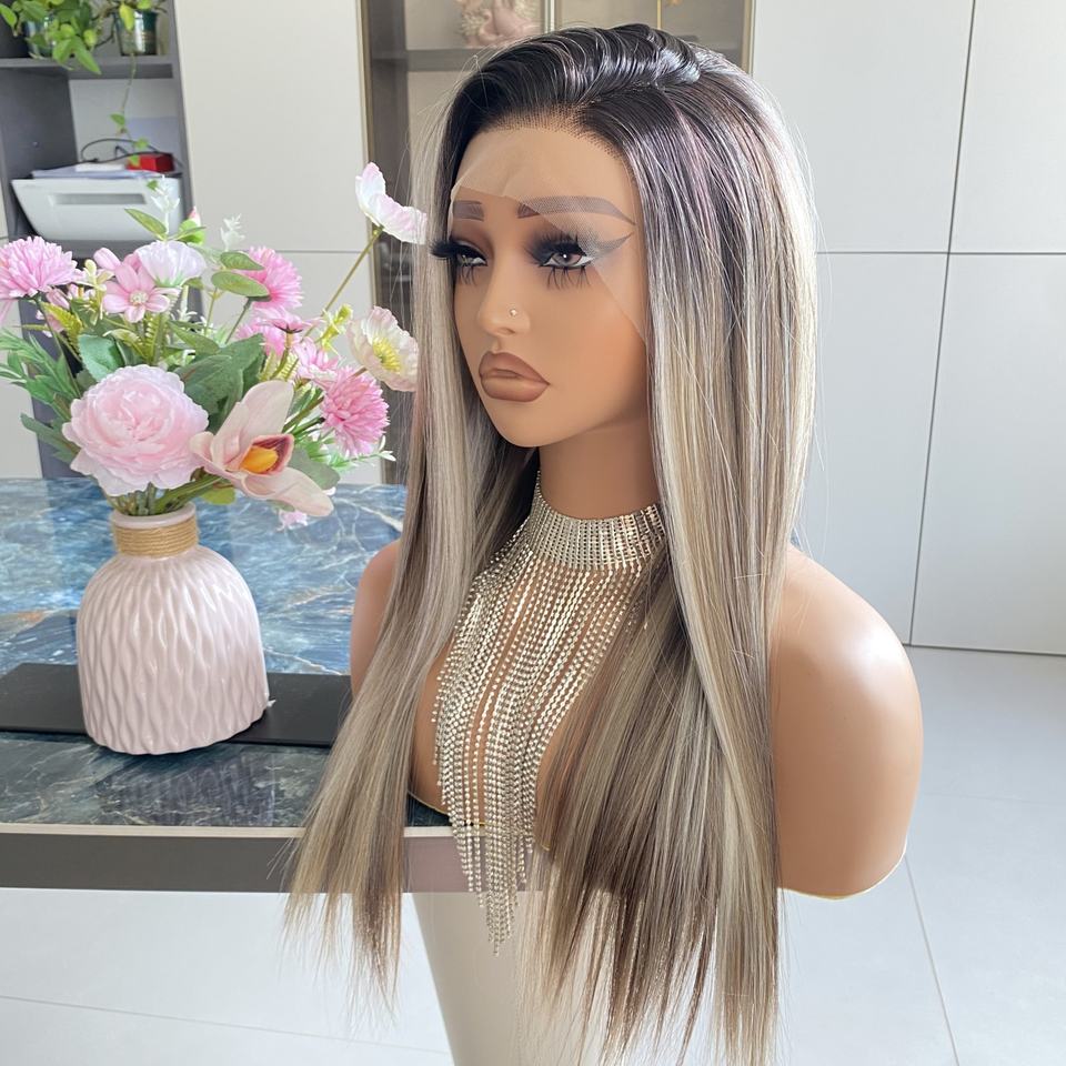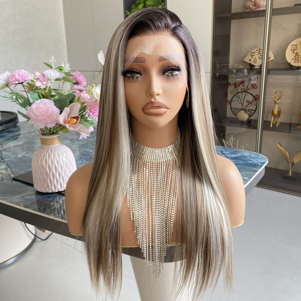 Factory Price Futura Fiber Wigs Brown Highlight Synthetic 13x4 Transparent HD Front Glueless Natural Hairline Silky Straight