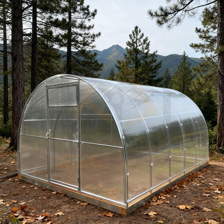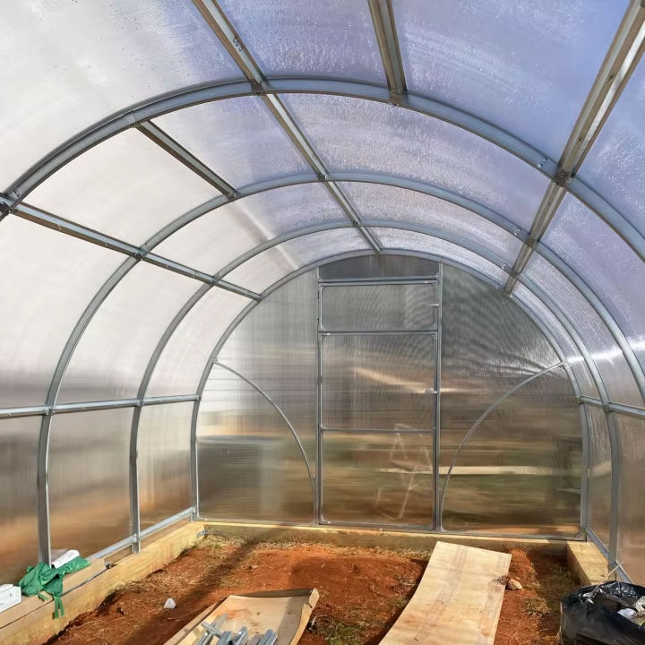 โรงเรือนปลูกต้นไม้กลางแจ้งสำเร็จรูปทรงอุโมงค์หลังบ้าน ทำจากแผ่นโพลีคาร์บอเนตบนฐานเหล็กชุบสังกะสี ราคาโรงงาน