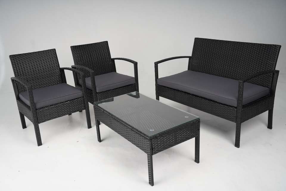 ชุดโต๊ะกระจกนิรภัย5มม. ชุดรับประทานอาหารกลางแจ้งชุดกล่องบรรจุภัณฑ์หวายชุด4ที่นั่ง Phu Linh
