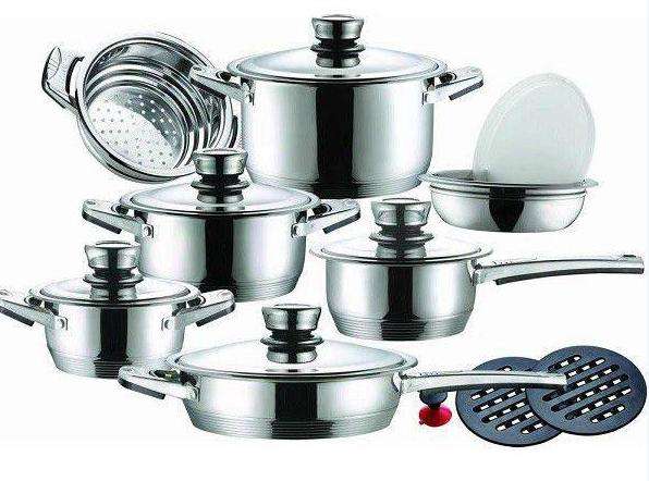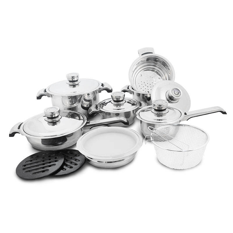 ชุดเครื่องครัวสแตนเลสอย่างดี ราคาโรงงาน พร้อมฝาปิดกระจกมีขอบกว้าง พร้อมเทอร์โมมิเตอร์ในตัว โครงสร้างโลหะคุณภาพพรีเมียม
