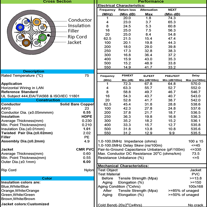 สายเคเบิลข้อมูลเครือข่าย UTP Cat 6ประเภท