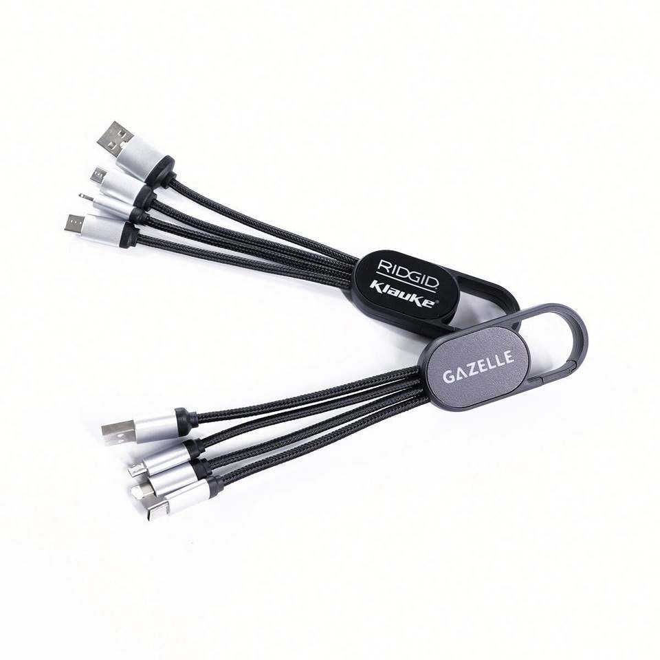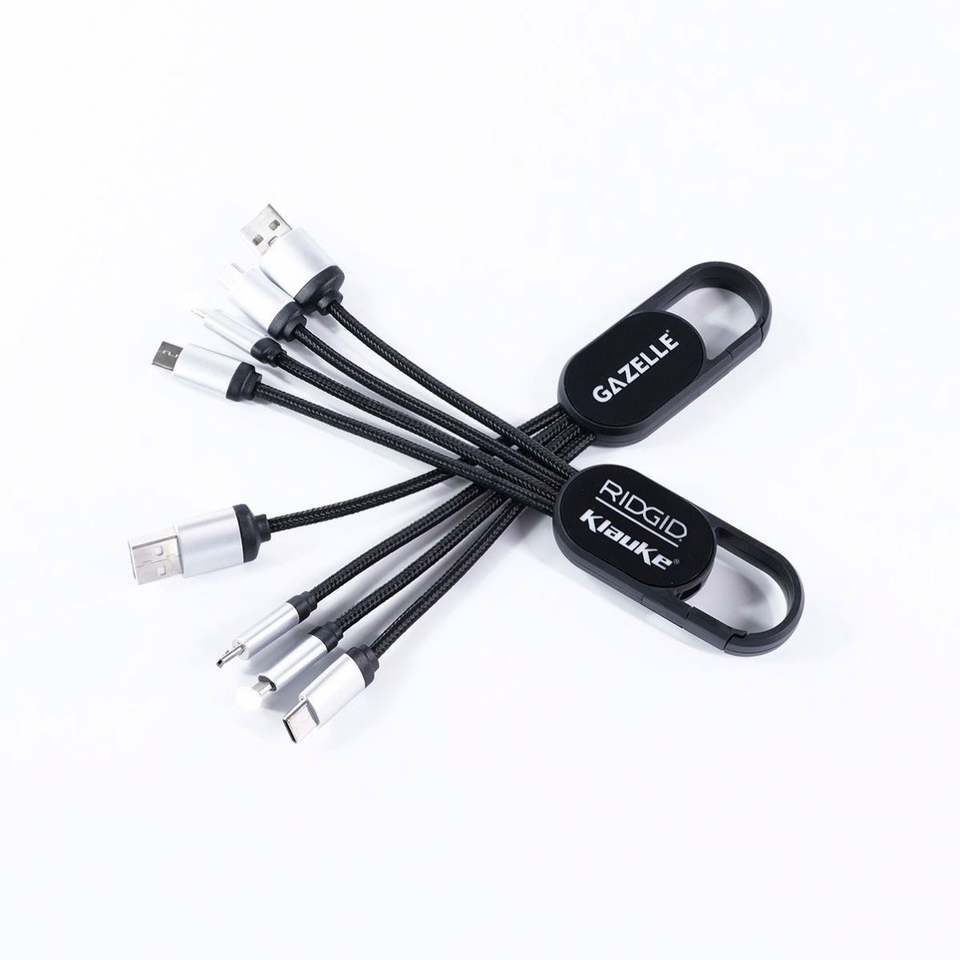 ราคาโรงงาน คุณภาพสูง ขายส่ง สายชาร์จ USB 4 in 1 พร้อมไฟ LED โลโก้สั่งทำได้ สายชาร์จ USB แบบคาราไบเนอร์