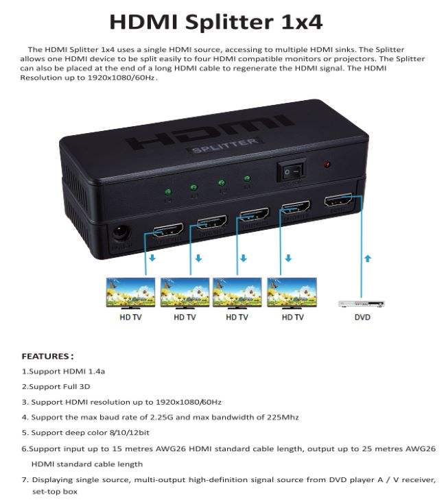 ตัวสลับสัญญาณ HDMI 4X1รองรับ3D วิดีโอ HD สวิตช์ HDMI พร้อมฟังก์ชั่น IR สำหรับใช้ในบ้านและ1.4เสียง
