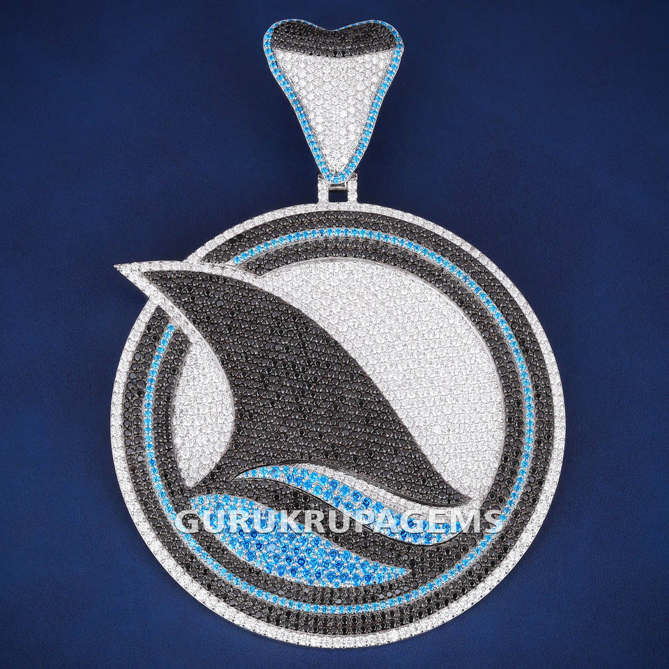 Factory Price Iced Out Moissanite Pendant 925 Silver Black & Blue Hip Hop Jewelry Custom Pendant for Chain