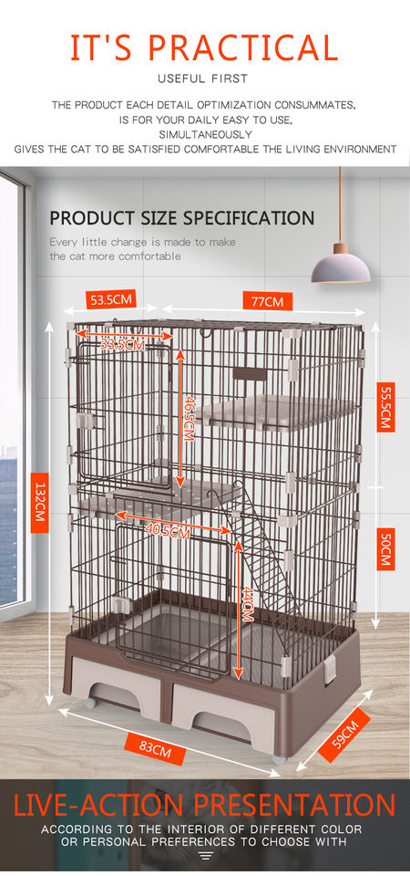 กรงสัตว์เลี้ยงแบบ3ชั้น,กรงแมวกรงโลหะกรงแมวพร้อมลิ้นชักสำหรับสัตว์เลี้ยงร้านค้า