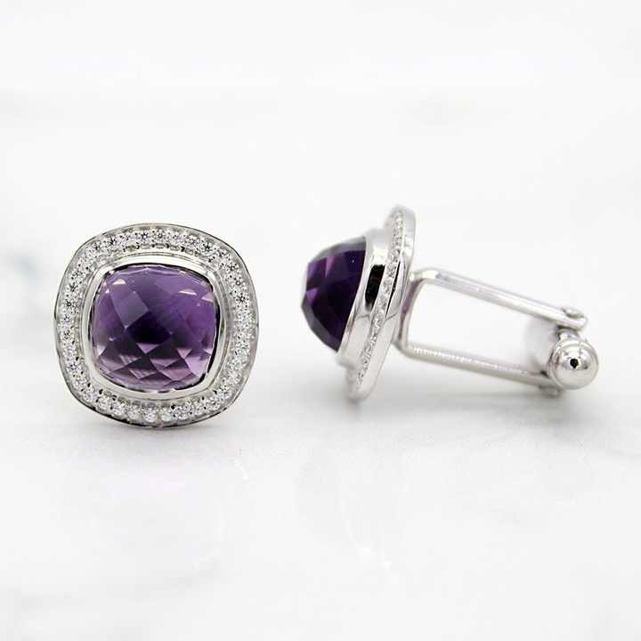 Wholesale 925 Silver Cufflinks Amethyst CZ Stone Eco-Friendly Promotional Gifts Supplier Exhibition Stock Cufflinks Bulk Order