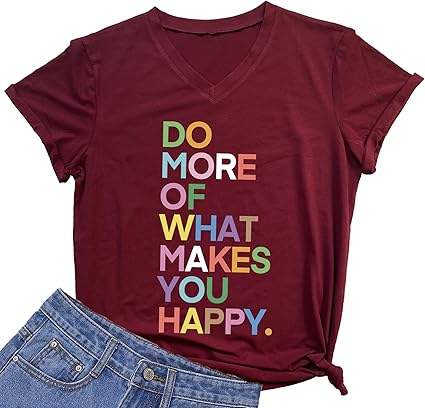เสื้อยืดพิมพ์ลายตัวอักษรน่ารักสำหรับผู้หญิงเสื้อยืดกราฟิคมีความสุขสนุกๆสำหรับฤดูร้อน