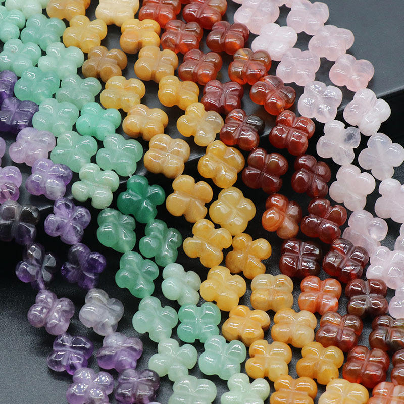 ราคาโรงงาน ลูกปัดหินนำโชค 14 มม. โรสควอตซ์ธรรมชาติ คริสตัลอาเกต อเมทิสต์ รูปใบโคลเวอร์สี่แฉก สำหรับทำสร้อยข้อมือ DIY