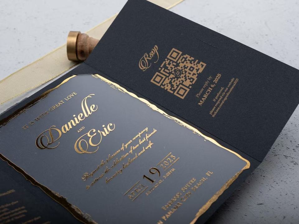 การ์ดเชิญงานแต่งงานดีไซน์หรูหราทันสมัยแบบกำหนดเองพร้อมซองจดหมาย ราคาโรงงาน บัตรอวยพรส่วนตัว