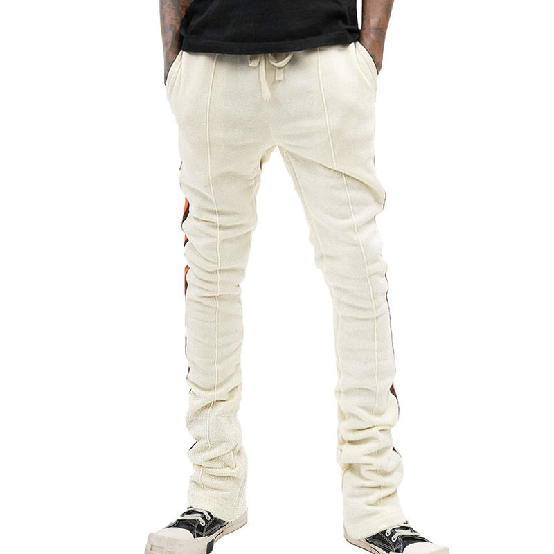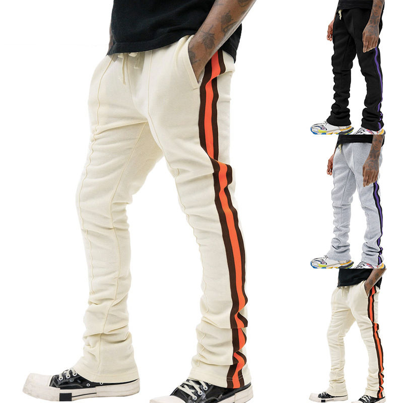 Factory Price Mens Flared Sweatpants Loose Fit Polyester Stacked Jogger Pants Side Stripe Streetwear Casual Eco-Friendly