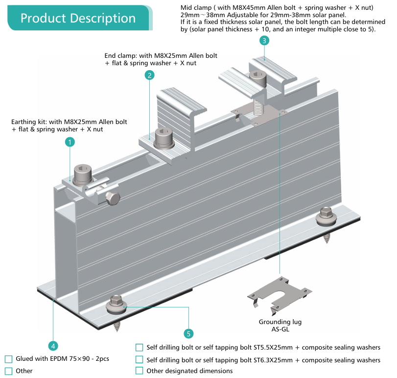 Factory Price Metal Roof Solar Mounting Bracket Mini Rail Tile Roof Aluminum Rail Solar Mounting System | Art Sign