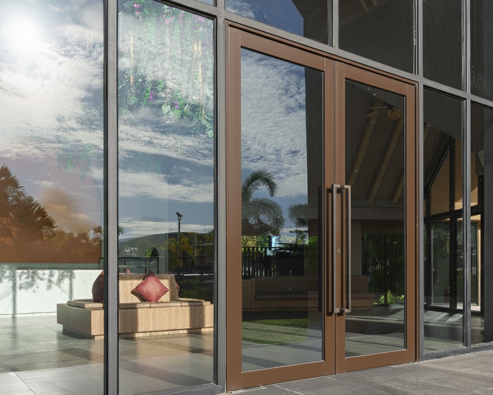 ประตูกระจกกันเสียงเคลือบสองชั้นสำหรับวิลล่าประตูกระจกอลูมิเนียมแตกความร้อนแบบทันสมัย