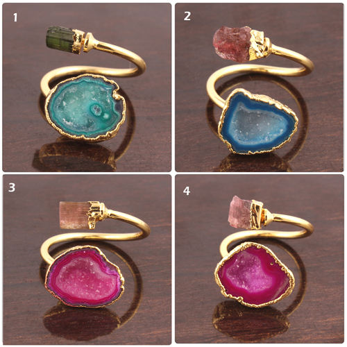 หิน:ดิบสีเขียว Tourmaline & Geode Druzy