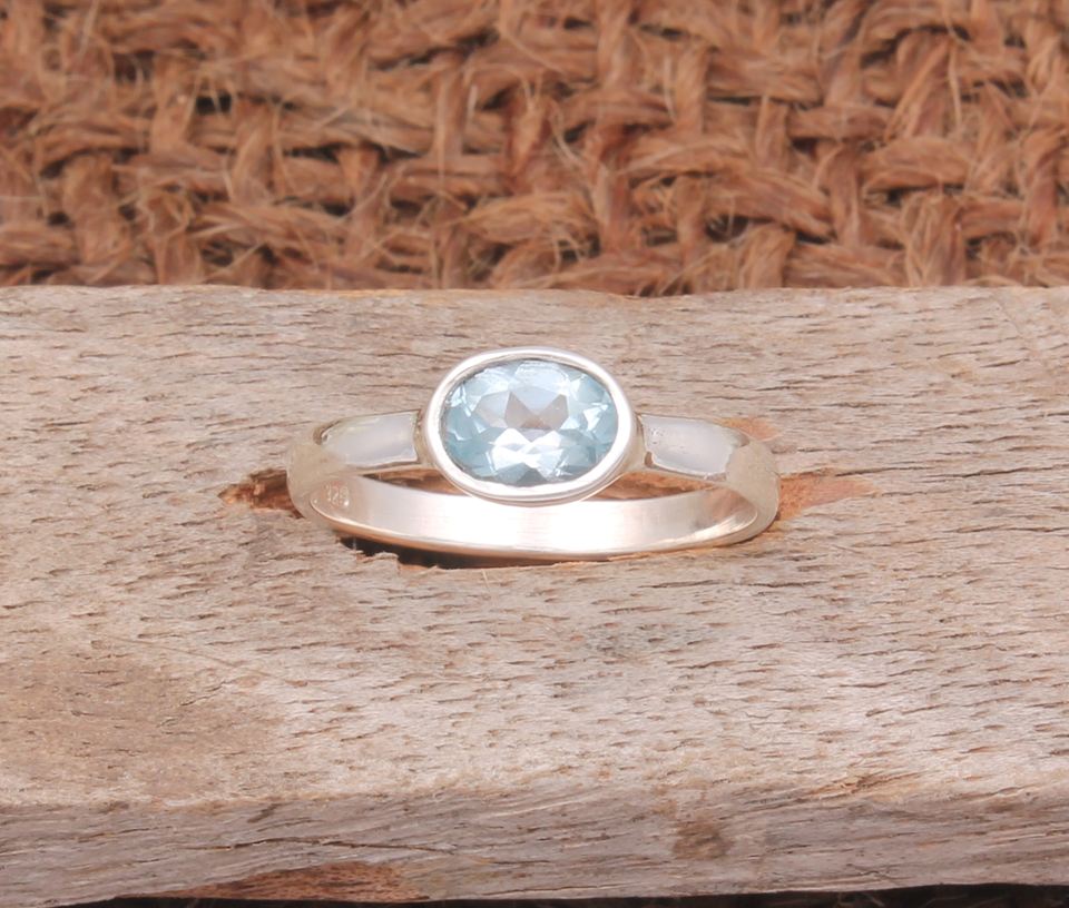 แหวนเงินแท้ประดับบลูโทแพซธรรมชาติ ดีไซน์เรียบง่าย สไตล์มินิมอล เหมาะสำหรับงานแต่งงาน งานหมั้น หรือเป็นของขวัญในเดือนพฤศจิกายน