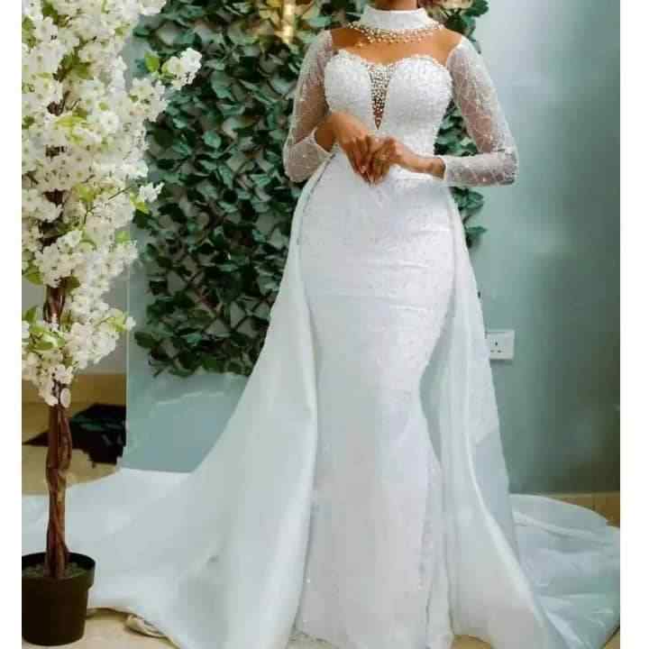 ชุดแต่งงานทรงแอฟริกันแขนยาวแบบถอดออกได้ชุดเจ้าสาวแบบหรูใหม่ราคาโรงงาน