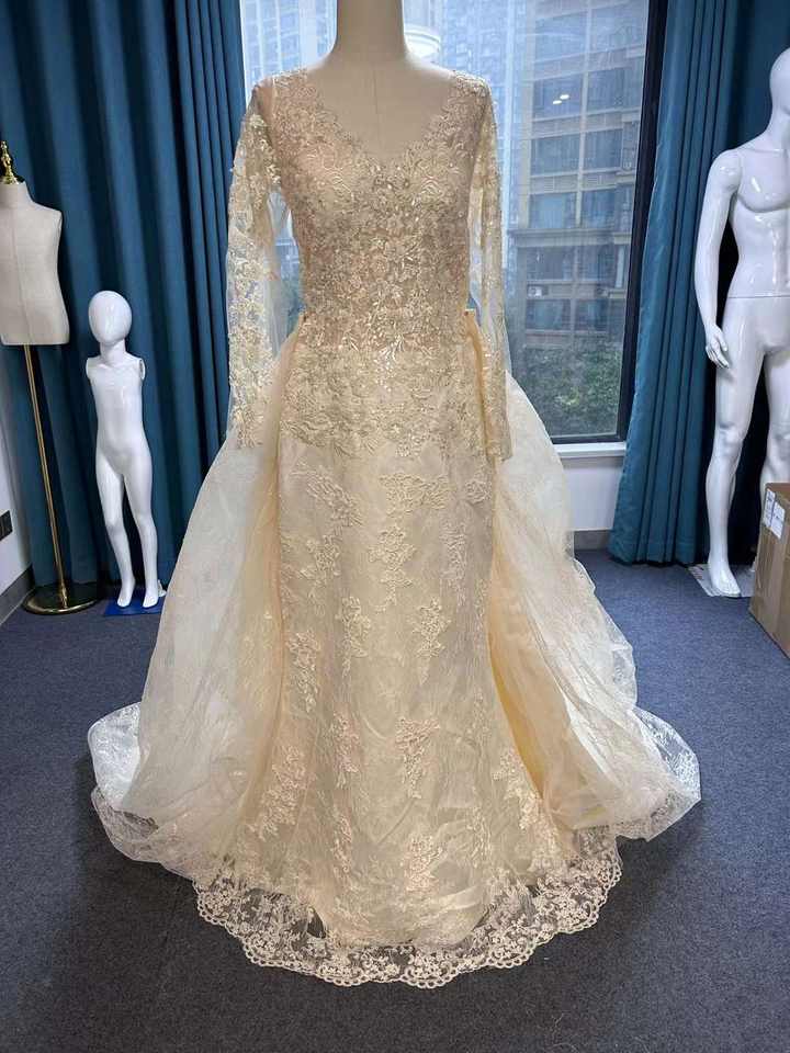 กระโปรงผ้าโปร่งลายรถไฟแชมเปญสำหรับชุดแต่งงานขนาด80ซม. แต่งจีบชุดราตรีนางเงือกวัสดุปรับแต่งได้สำหรับเจ้าสาวรุ่น #88978