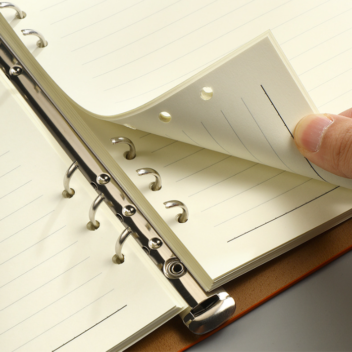 สมุดโน้ตหนังแบบเติมได้ทำจากหนังมีตัวจัดระเบียบหนังแท้แบบเต็มแผ่นมีห่วง6ห่วง A5