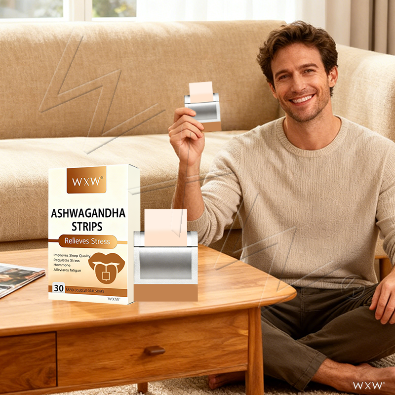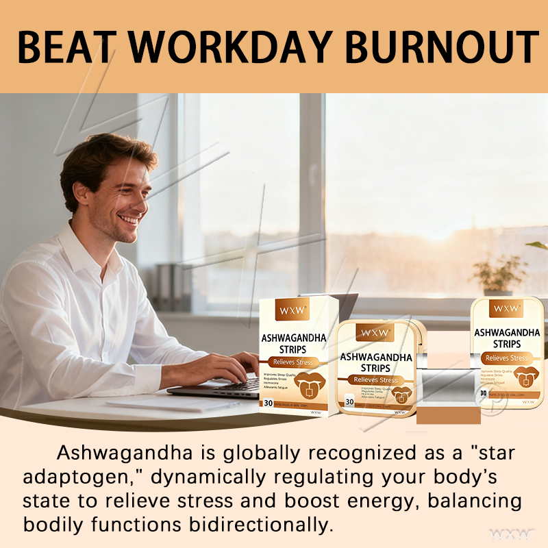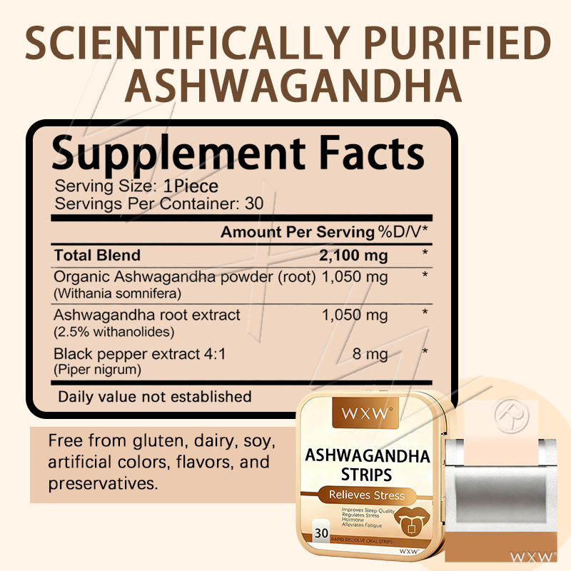 ผง Ashwagandha ออร์แกนิกและสารสกัดจากพริกไทยดำแผ่นในช่องปากช่วยลดความเครียด