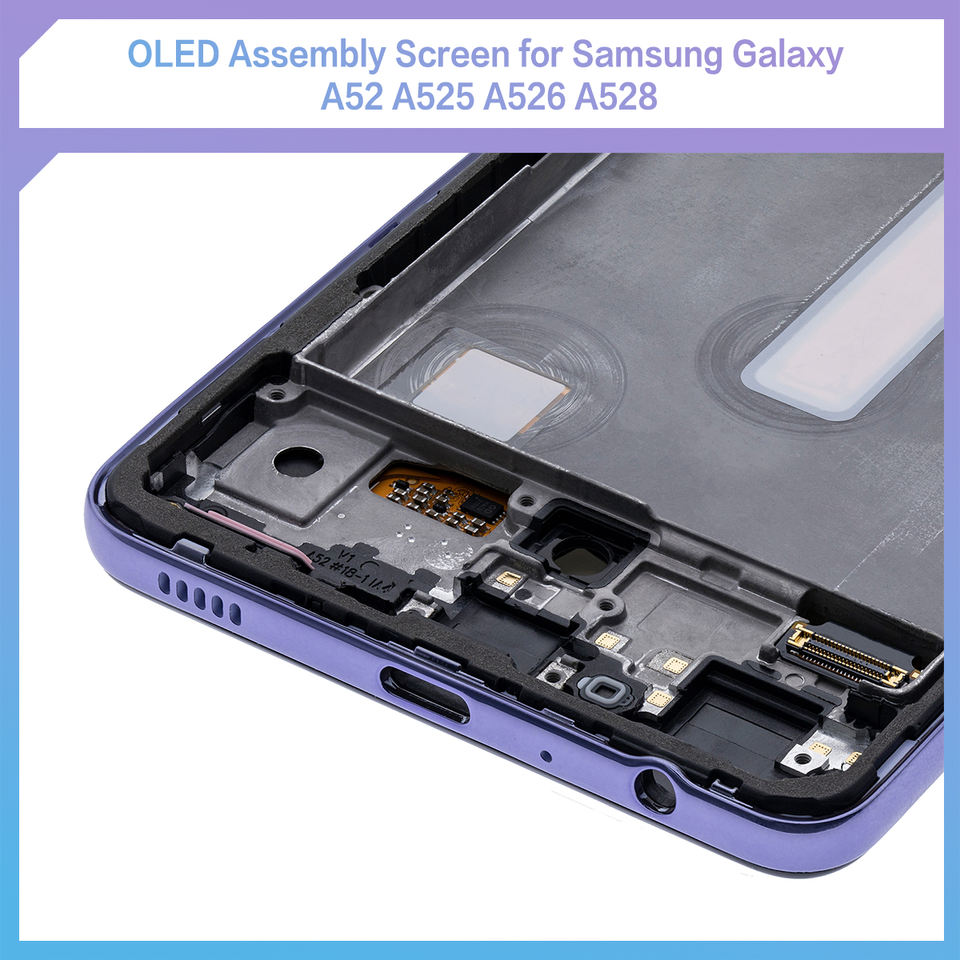 จอสัมผัส OLED แบบดั้งเดิมประกอบได้เต็มรูปแบบพร้อมกรอบสำหรับ Samsung Galaxy A52 A525 A526 A528