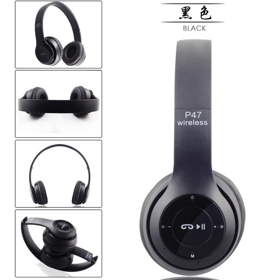 ชุดหูฟังไร้สายสำหรับเล่นกีฬาพร้อม TF Card P47หูฟังไร้สายแบบแฮนด์ฟรีพร้อมไมโครโฟนเสียงสเตอริโอ