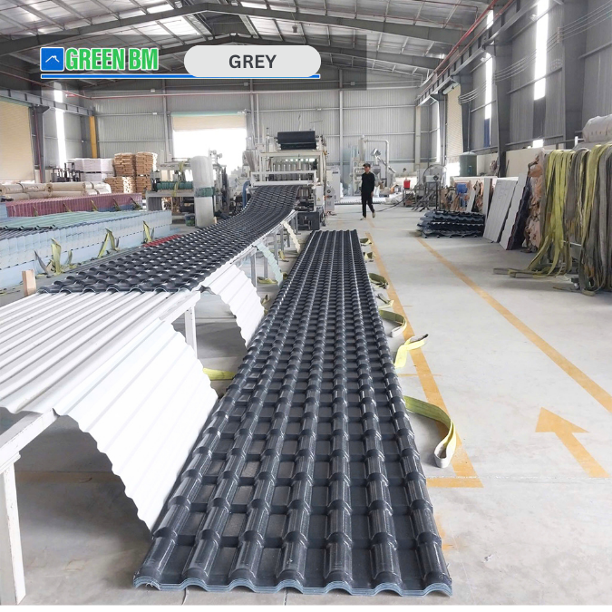 กระเบื้องมุงหลังคาพลาสติกกันน้ำดีไซน์ทันสมัยพื้นผิวลูกฟูกกันน้ำสินค้าจากเวียดนาม