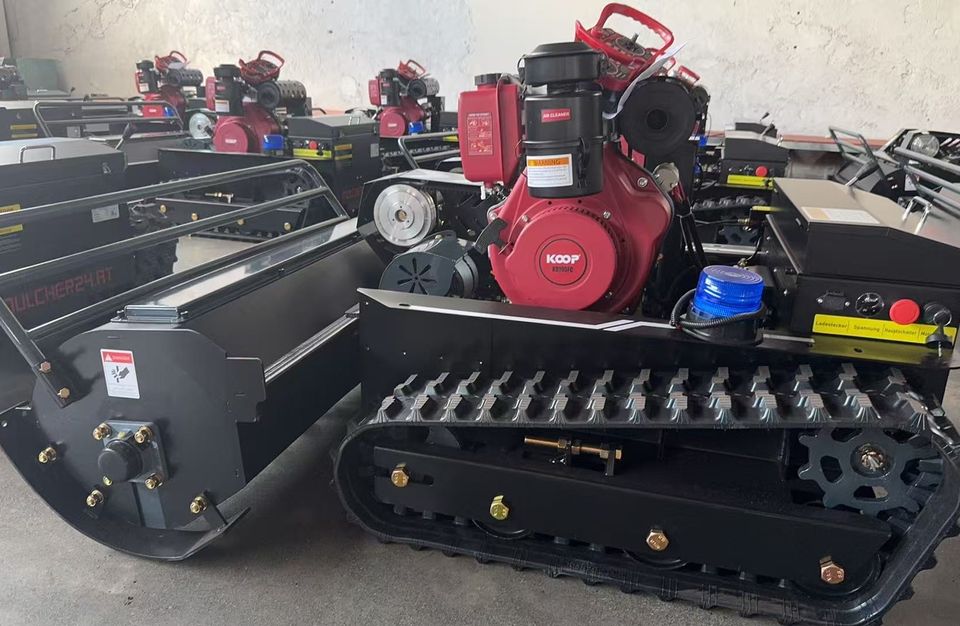 หุ่นยนต์ตัดหญ้าแบบมืออาชีพสำหรับสวนเพื่อการเกษตรและป่าไม้การควบคุมระยะไกลแบบพกพา