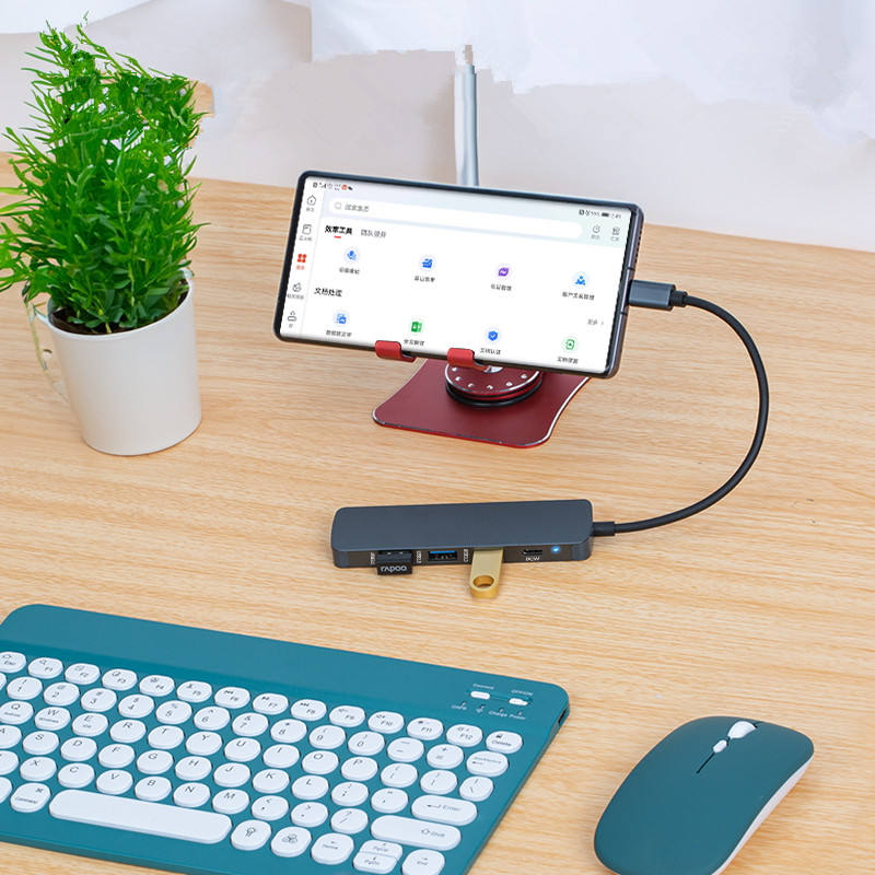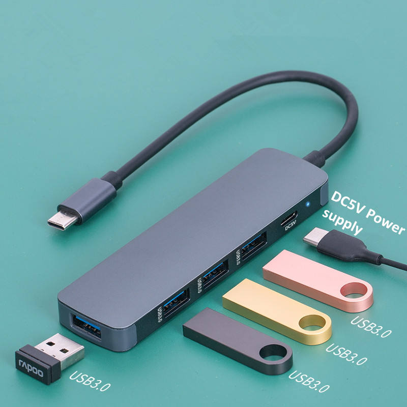 ฮับ USB แบบพกพาส่งข้อมูลความเร็วสูง5 in 1 USB C ฮับเชื่อมต่อกับแหล่งจ่ายไฟ