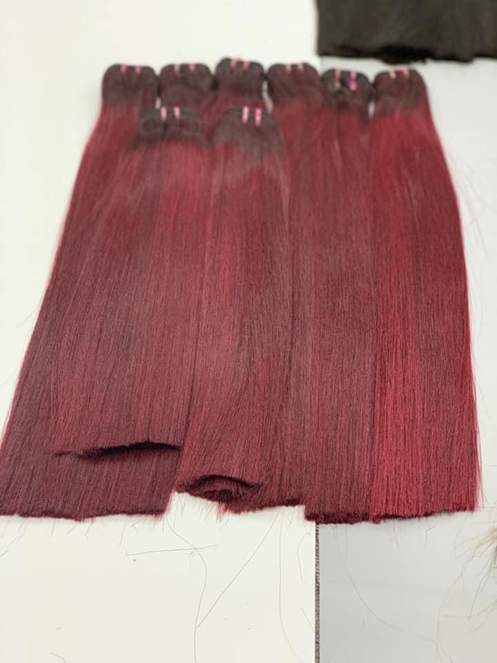 ผมมนุษย์แบบมัดเป็นเส้นผมสีแดงตรงนุ่มสลวยสองชั้น