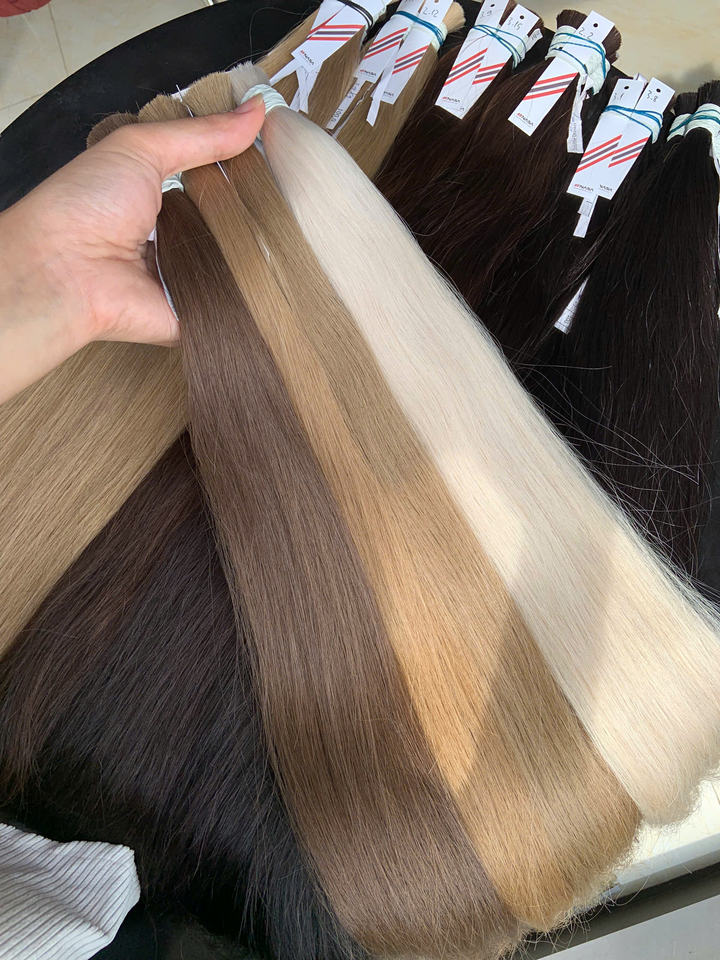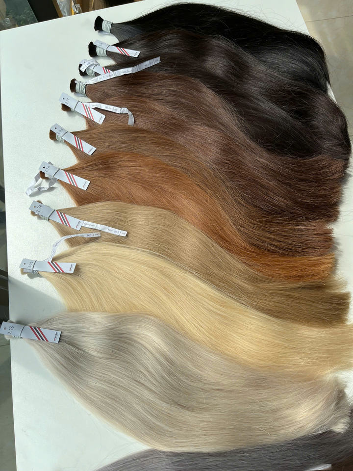 ราคาโรงงาน ผมต่อเวียดนามแท้ เนื้อธรรมชาติ แบบเป็นมัด คุณภาพสูง จัดเรียงเกล็ดผม 55 ซม. ซุปเปอร์ดับเบิ้ลดรอน