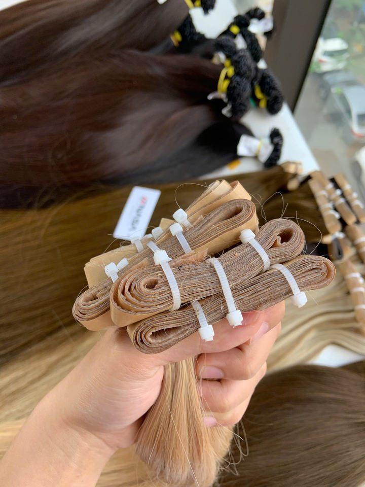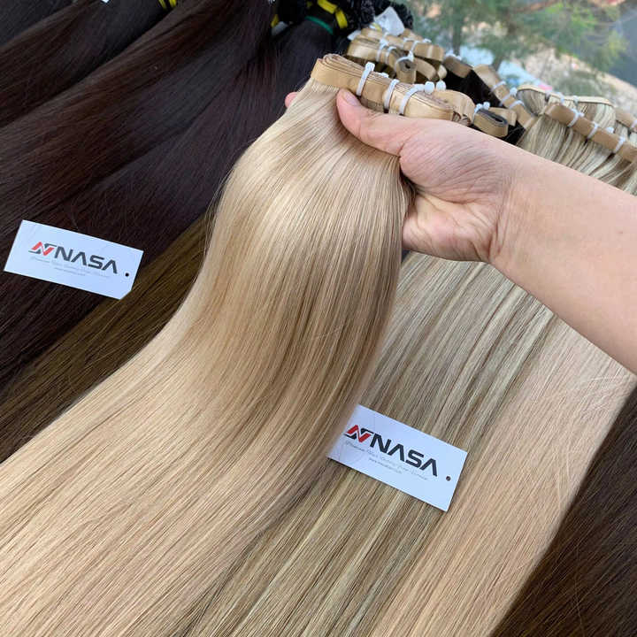 ผมต่อผมมนุษย์แบบเทปยาวสีแพลตตินัม100% ผมมนุษย์เวียดนาม