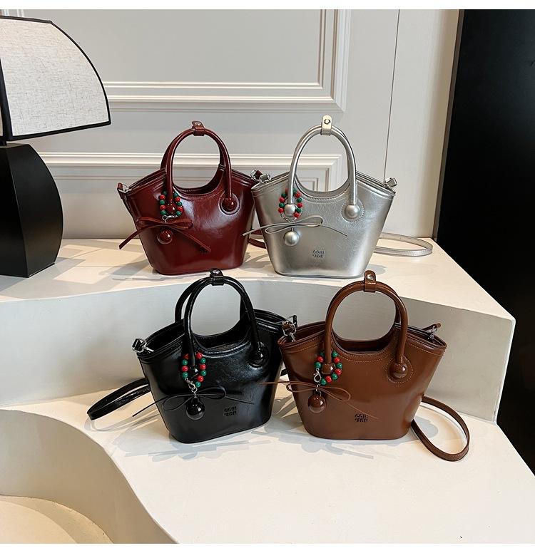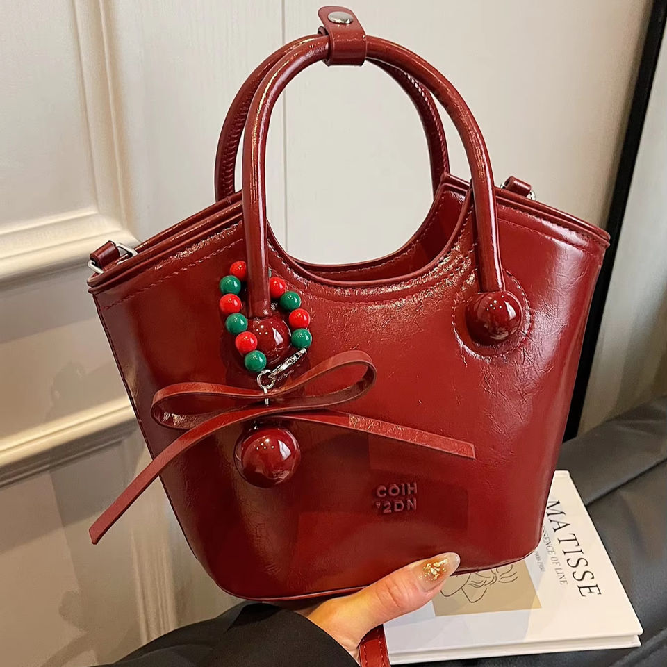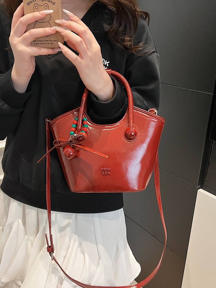 กระเป๋าถือสะพายข้างสีแดงราคาโรงงาน กระเป๋าถือทรงถังพรีเมียมสำหรับงานแต่งงาน กระเป๋าถือแบบถือหรือสะพายไหล่เดียว