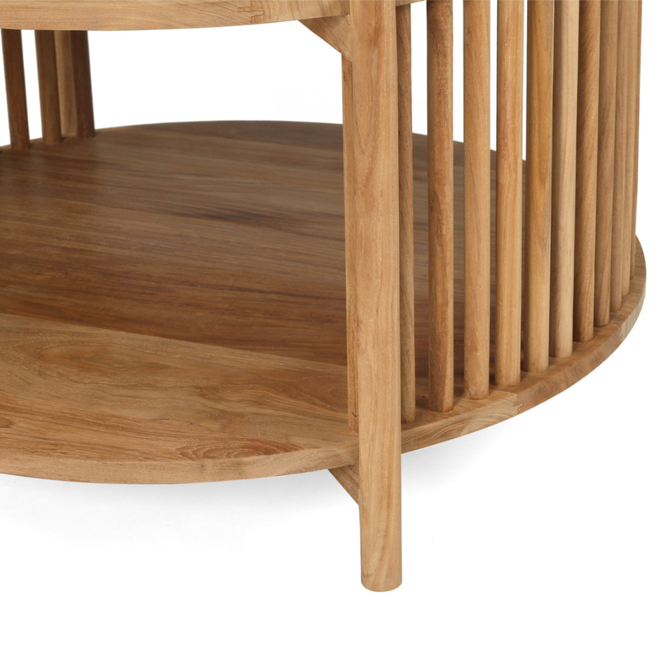โต๊ะกาแฟทำจากไม้สักทรงกลมแบบแข็งทำจากธรรมชาติโต๊ะกาแฟสำหรับบ้านพักในอพาร์ทเมนต์