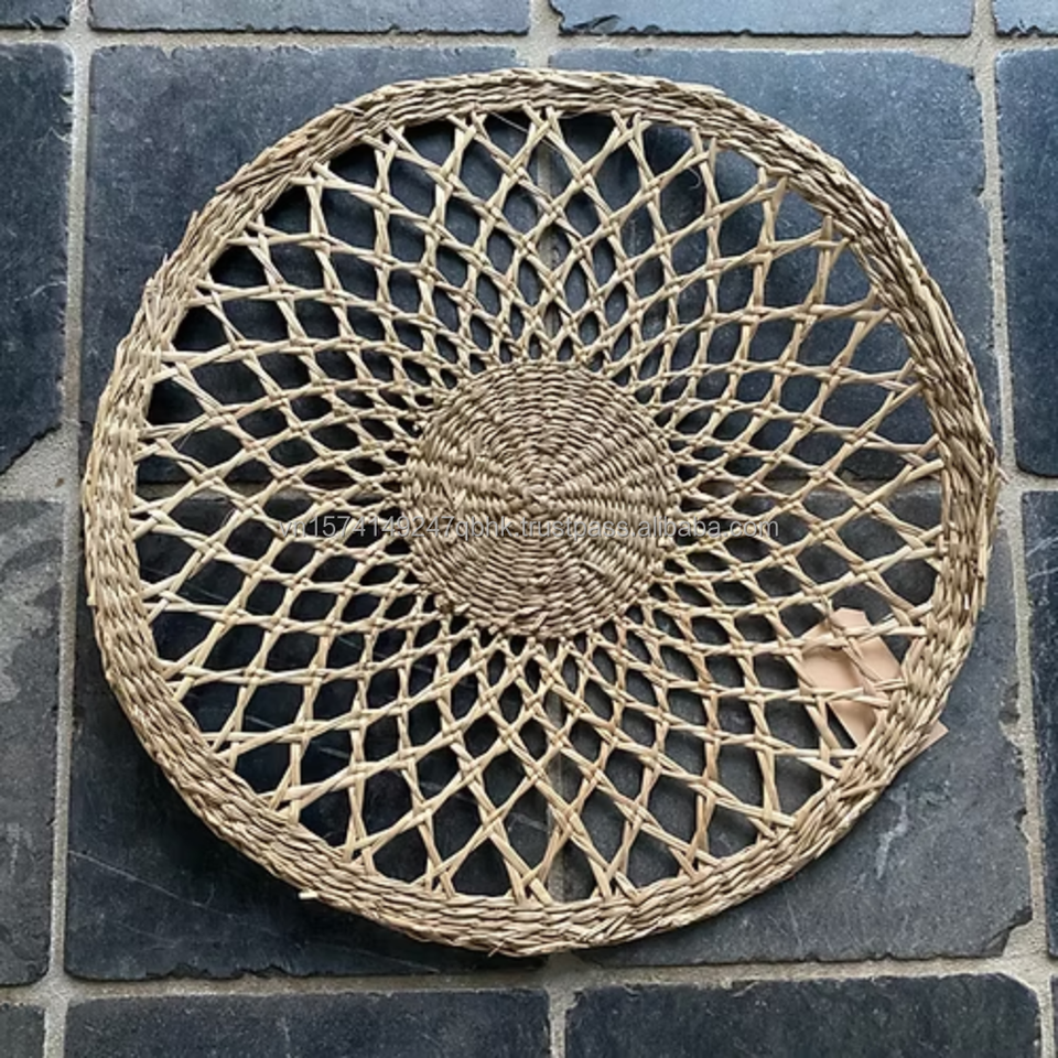 แผ่นรองจานหวายสานด้วยมือสไตล์โบฮีเมียนธรรมชาติแบบชนบท