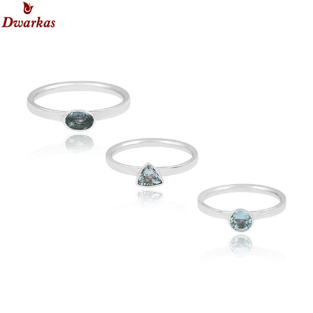 ชุดแหวนเงิน925สเตอร์ลิง3ชิ้นที่ซ้อนกันได้พร้อมพลอยโทแพซสีฟ้าธรรมชาติเครื่องประดับสำหรับงานแต่งงาน
