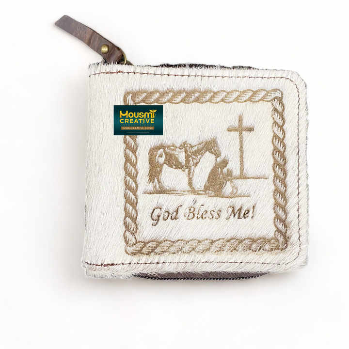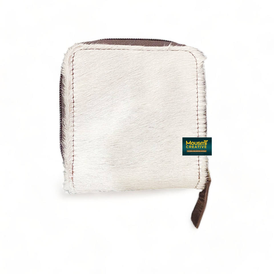 กระเป๋าสตางค์พับสองทบแบบสั้นปักลายรูปวัวเด็กชายวัวแท้ซ่อนตัวแยก RFID ตัวบล็อกเงินแบบรูดซิปสีขาว