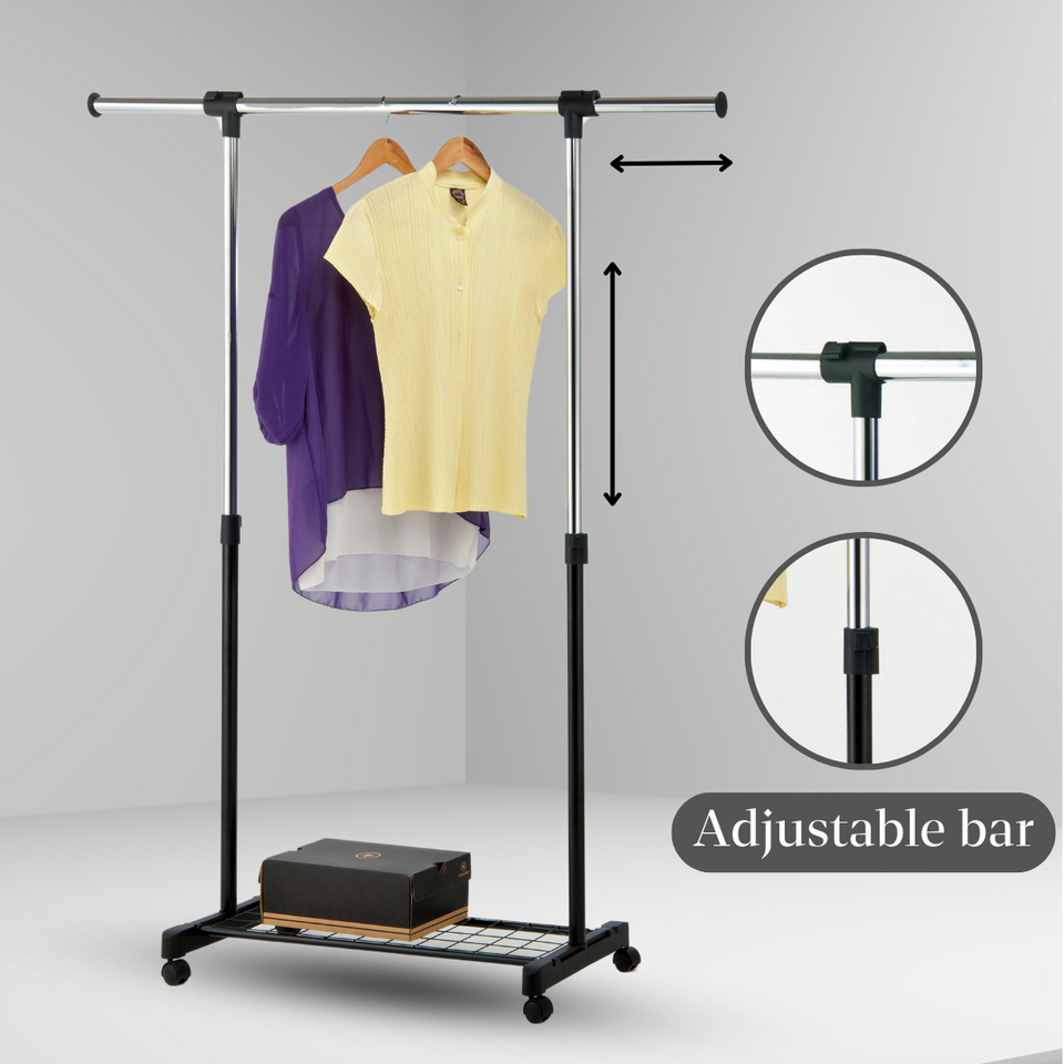 ชื่อผลิตภัณฑ์:ราวตากผ้าแบบเสาเดียวพร้อมชั้นวางเสื้อผ้าเคลื่อนที่