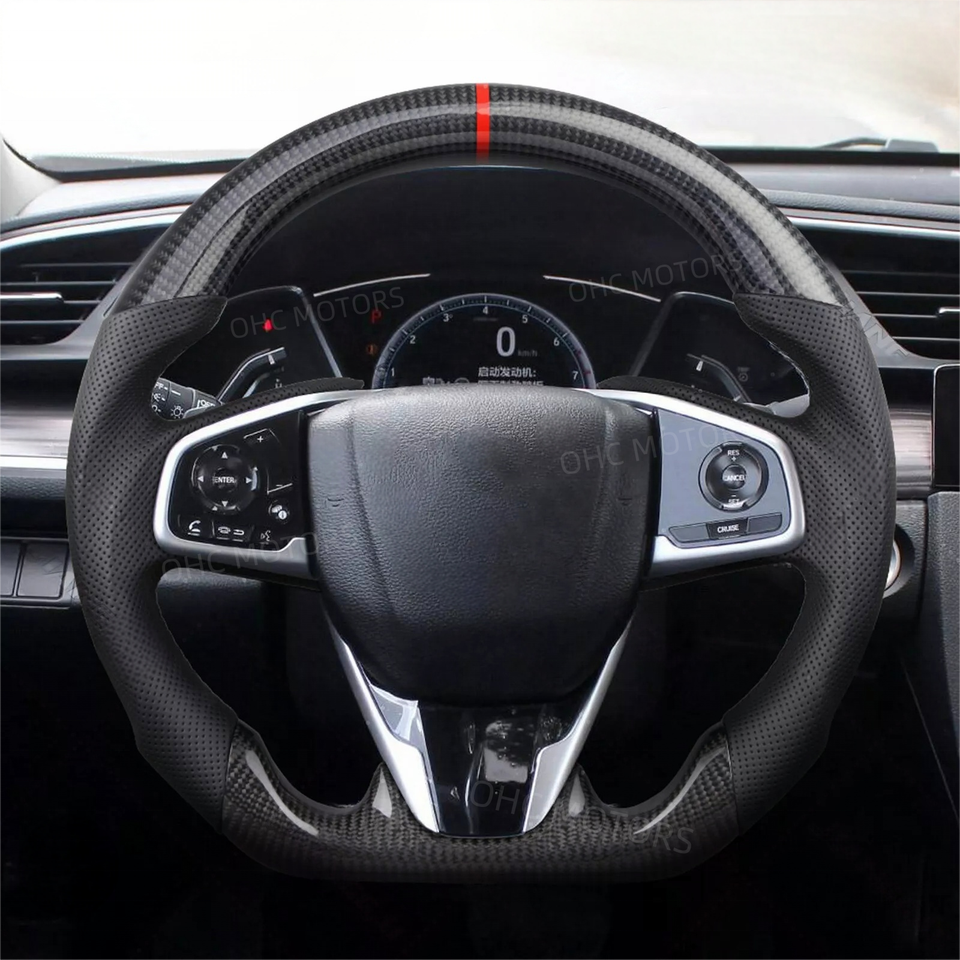 ชื่อผลิตภัณฑ์:พวงมาลัยรถคาร์บอนไฟเบอร์ LED รถแข่งแท้สำหรับฮอนด้าซีวิค
