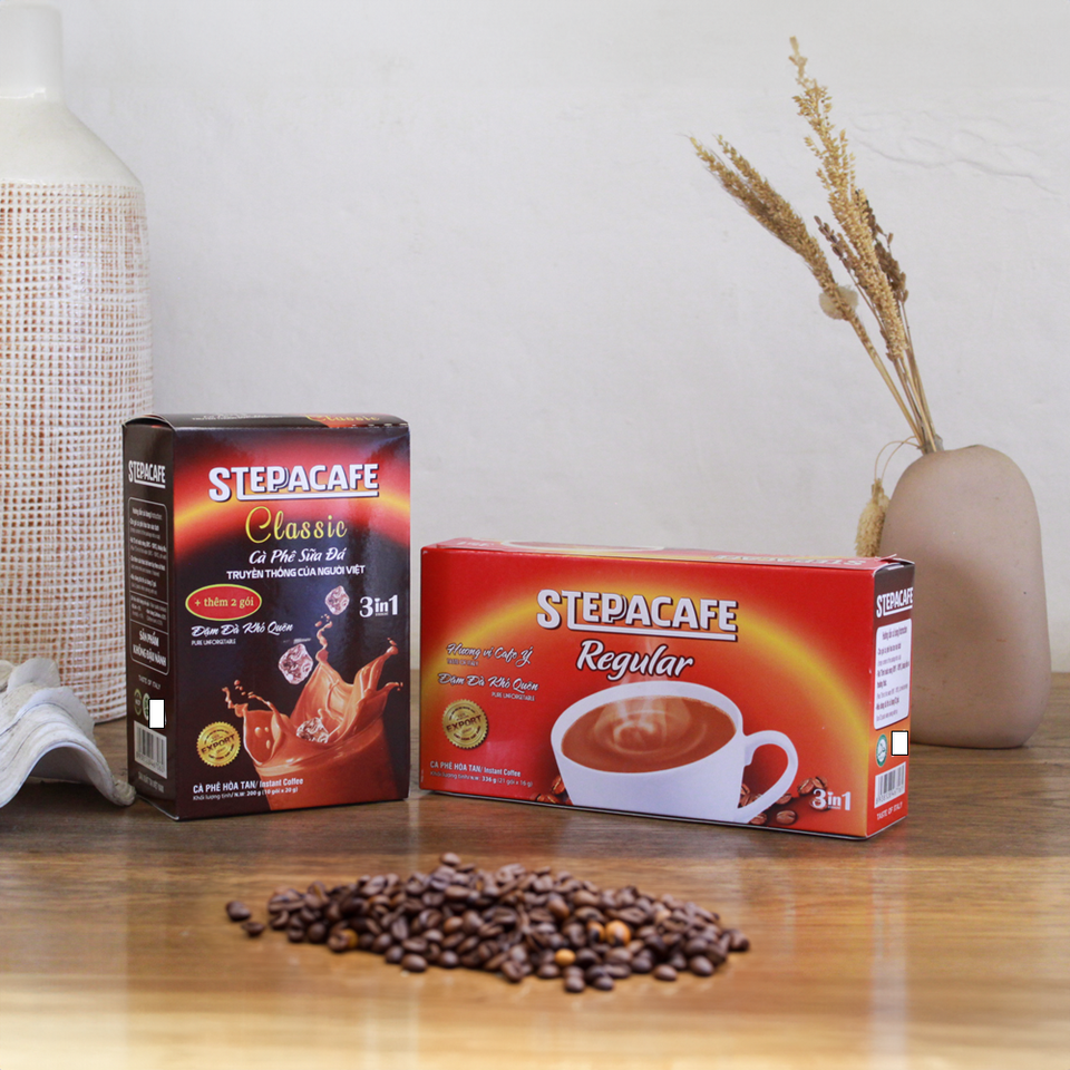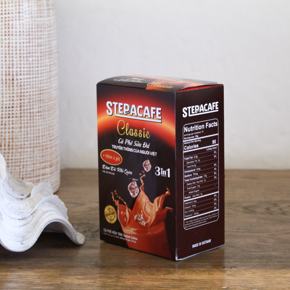 สเตปป้าคาเฟ่ผงกาแฟอินทรีย์3-in-1คลาสสิกโรบัสต้าแบบ3-in-1 200กรัมครีมน้ำตาลกล่องรสเวียดนาม