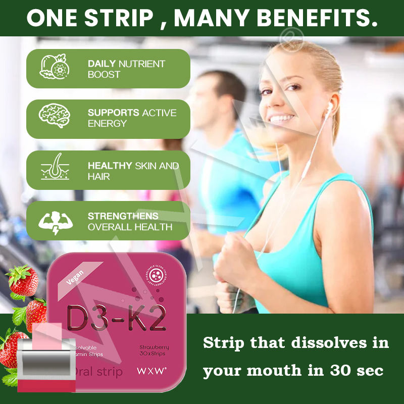 แผ่นฟิล์มบาง K2 D3วิตามินปราศจากน้ำตาลปรุงแต่งรสสตรอเบอร์รี่ K2ฟิล์มบำรุง D3ธรรมชาติ