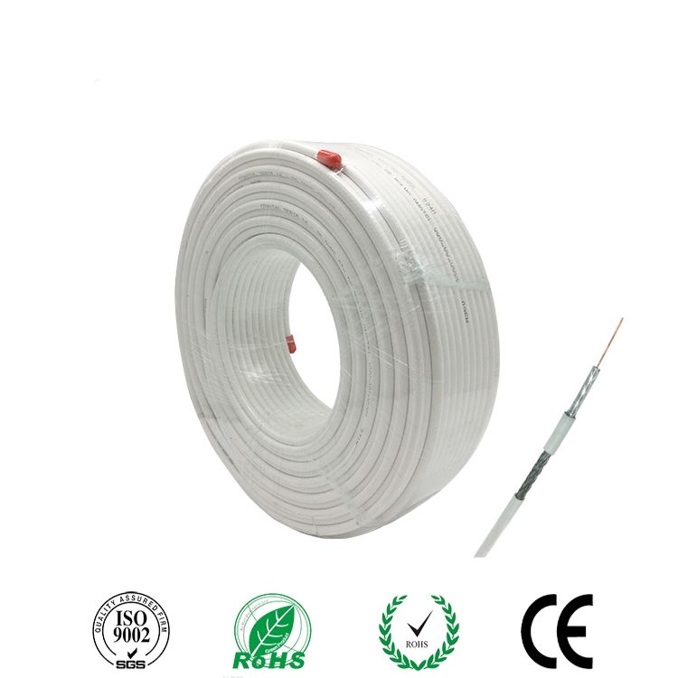 โรงงานราคาเสาอากาศทีวีเชื่อมต่อสายเคเบิลกล้องวงจรปิดสาย75Ohm RG6 Triple สายโคแอกเชียล