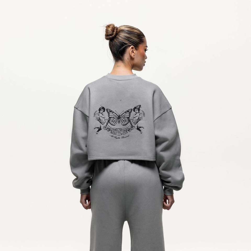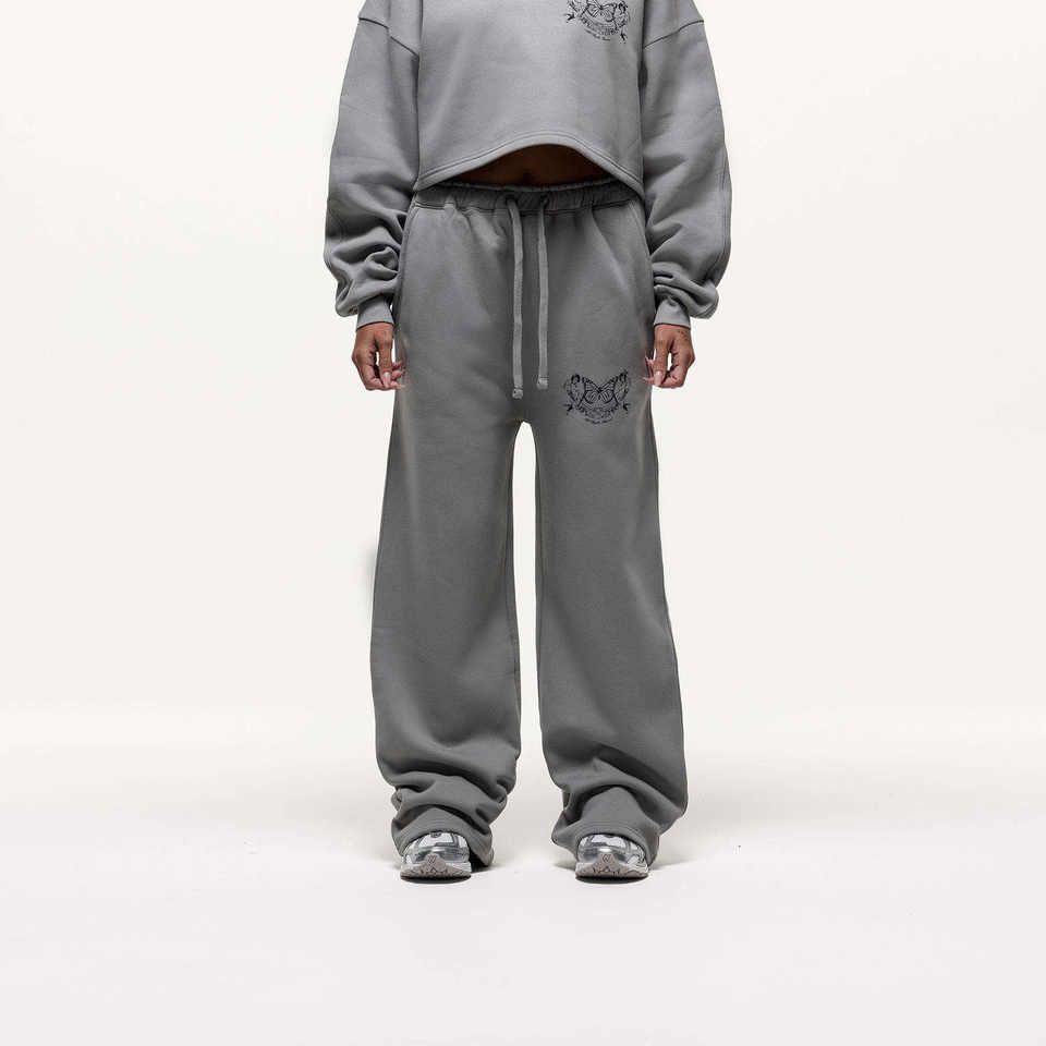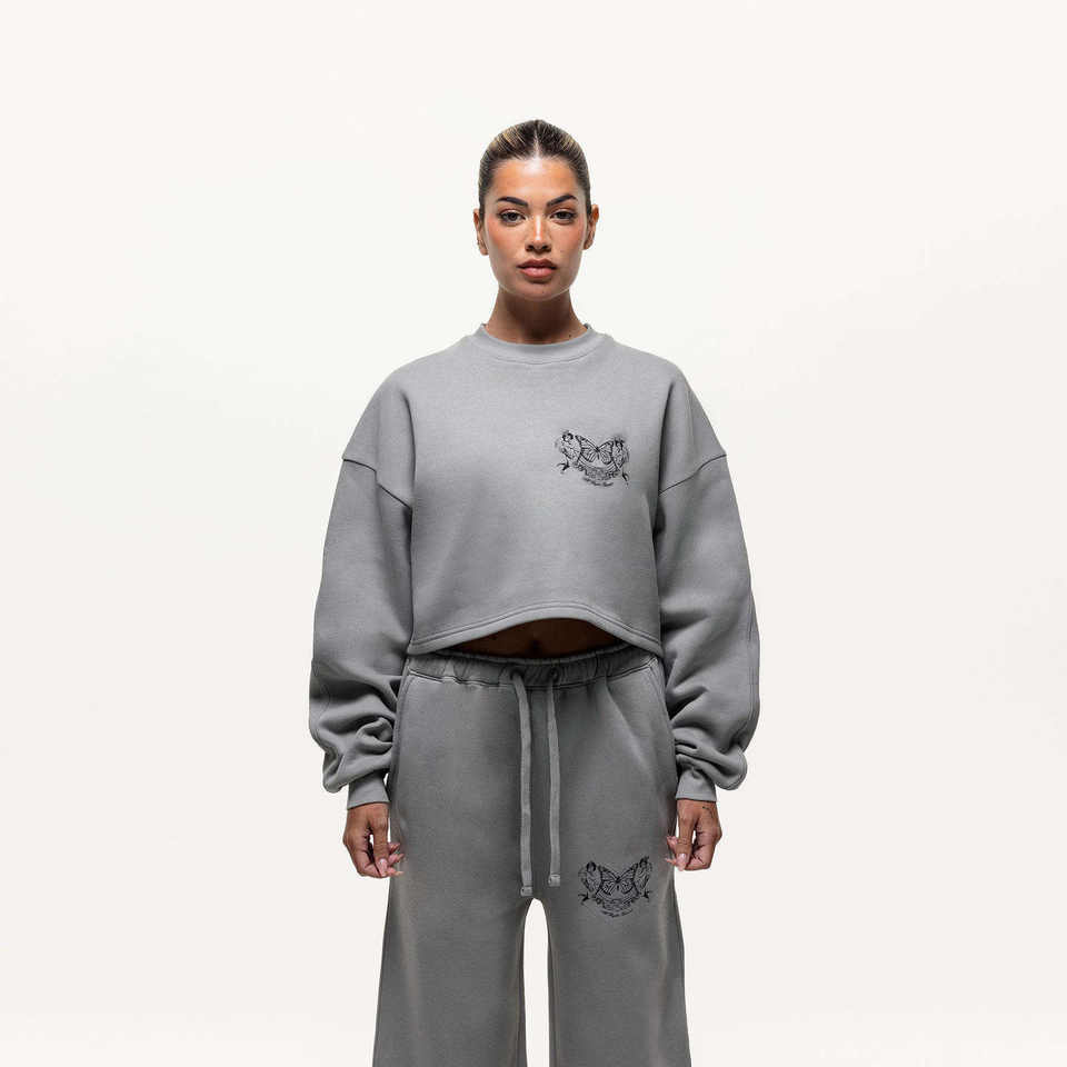 ชุดวอร์มสีเทาแบบไหล่ตกสำหรับผู้หญิง ชุดเซ็ต 2 ชิ้น เสื้อสเวตเชิ้ตและกางเกงขายาว ชุดออกกำลังกายและสตรีทแวร์ ราคาโรงงาน