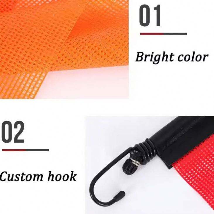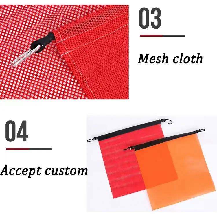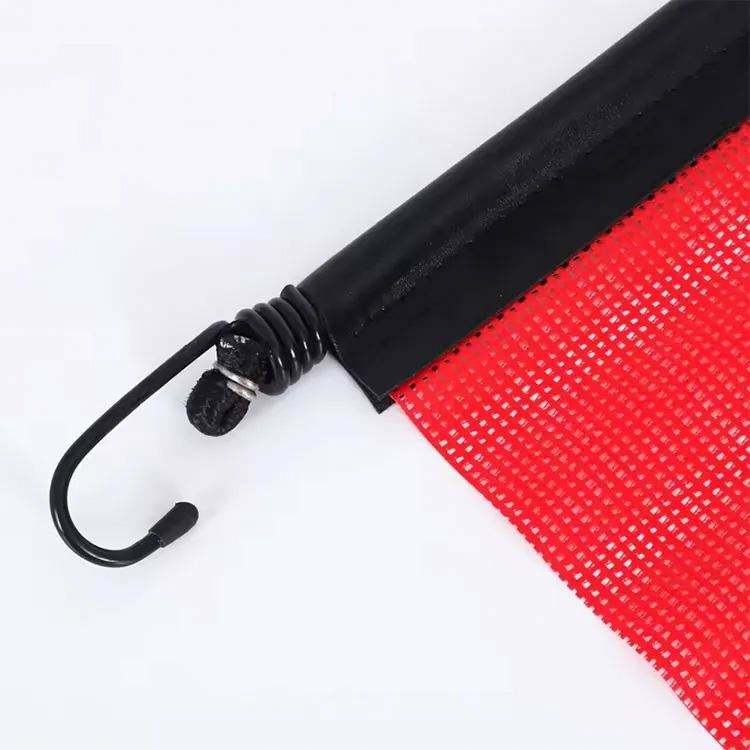 ผ้าตาข่ายนิรภัยจราจรราคาโรงงาน ผ้าพีวีซีสีส้มหลากสีแบบกำหนดเอง ธงนิรภัยรถบรรทุกพร้อมตะขอ
