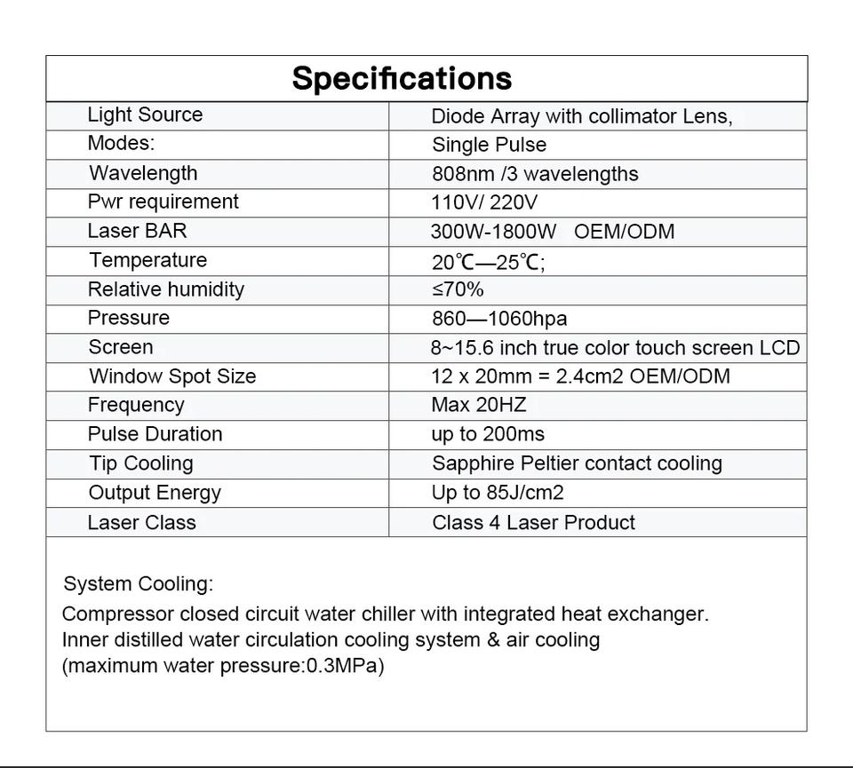 คุณสมบัติ:เครื่องเลเซอร์กำจัดขนไดโอด