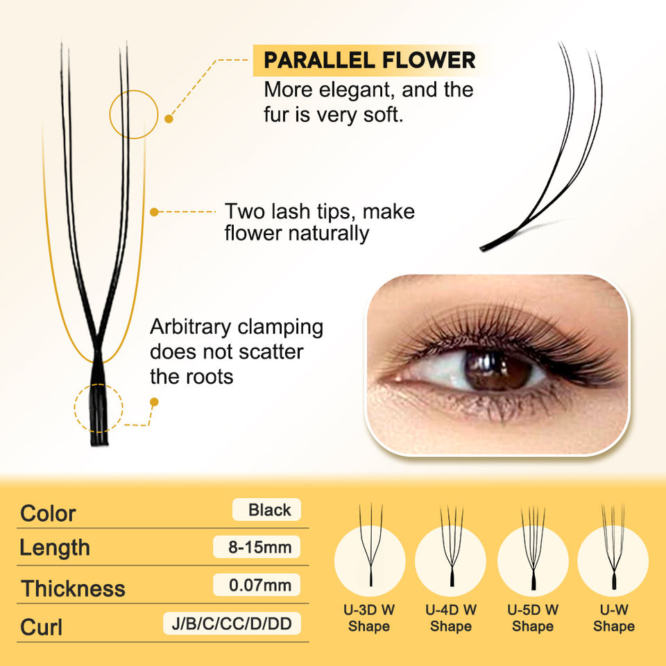 ขนตาปลอมรูปตัวยู2D 3D 4D รูปตัวยู0.07มม. สำหรับต่อขนตาปลอมรูปตัวยู