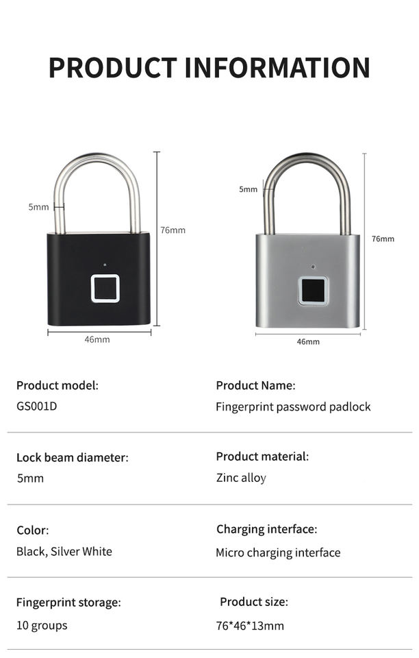กุญแจล็อคอัจฉริยะแบบไร้กุญแจ USB-Type C สำหรับกระเป๋าเดินทาง/ตู้เก็บของ ระบบสแกนลายนิ้วมือ/นิ้วโป้ง ราคาโรงงาน