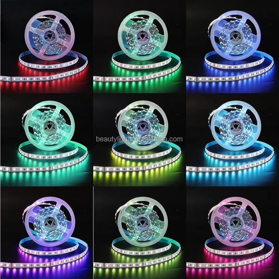 ราคาโรงงาน ขายส่ง 18W/M 24V 12มม. ไฟ LED SMD 5050 อัจฉริยะ RGB แถบไฟ LED อัจฉริยะ แสงสี RGB+W+WH 5050 60D 5in1 สี 5ม.