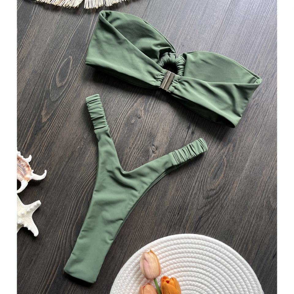 ราคาโรงงาน ขายส่ง ชุดบิกินี่ผู้หญิง 2 ชิ้น แห้งเร็ว ผ้ายืดสแปนเด็กซ์/โพลีเอสเตอร์ แบบไหล่เดียว บราดันทรง สายวี สีพื้นเรียบ