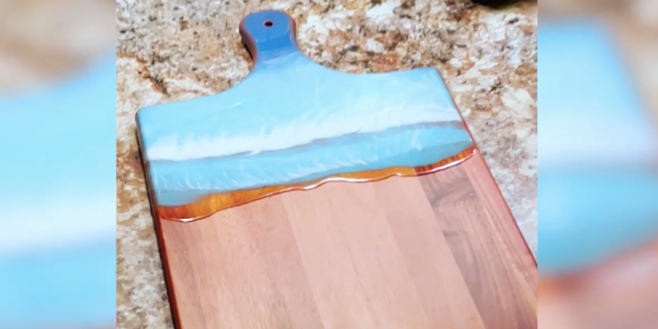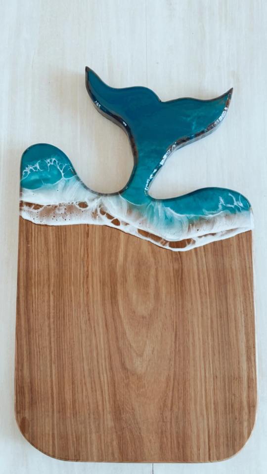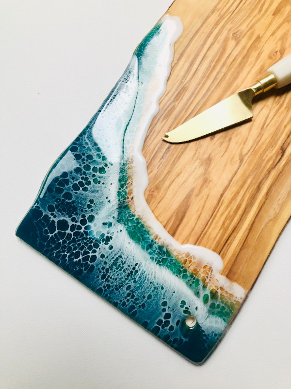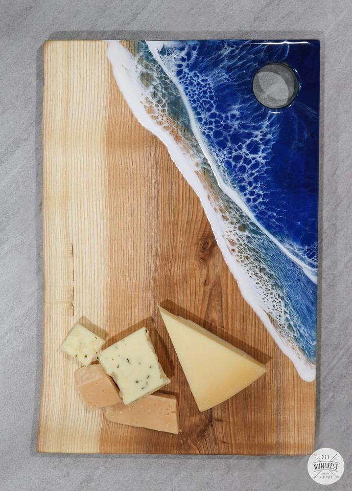 เขียงไม้เคลือบเรซิ่นอีพ็อกซี่ธรรมชาติ ถาดเสิร์ฟชีสไม้เคลือบเรซิ่น ถาดเสิร์ฟไม้ เขียงหั่นพร้อมหูจับ