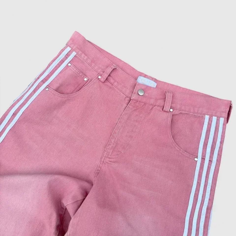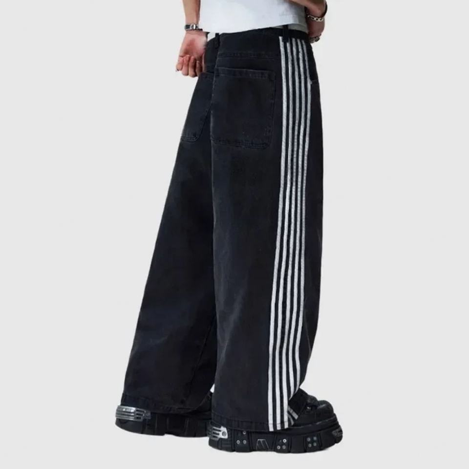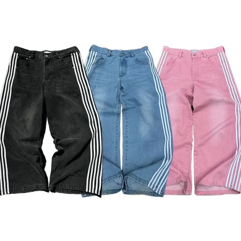 กางเกงยีนส์ทรงหลวมสไตล์ฮิปฮอป Y2K ลายข้างแบบวินเทจ ผ้าฝ้ายผสมไหมพิมพ์ลายโลโก้ สำหรับฤดูหนาว/ฤดูใบไม้ผลิ ราคาโรงงาน